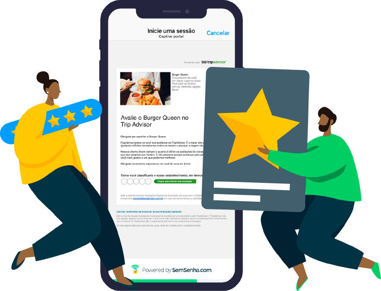 Antes de mais nada, um negócio bem avaliado recebe mais visitantes. E com o SemSenha, receber estrelinhas é fácil e automático. Assim, sempre que seus clientes forem ao seu estabelecimento será solicitado que ele faça uma avaliação da sua empresa não só no Google Meu Negócio, quanto no TripAdvisor. Isso acontece de maneira automática.