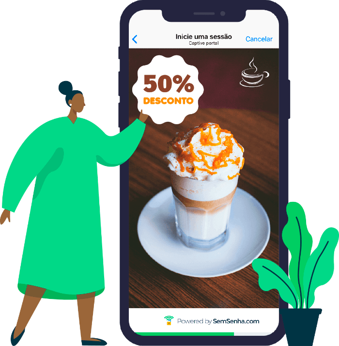 Nós trazemos benefícios não apenas para os seus clientes como também para você. Então ao olhar para o lado do consumidor, é proporcionada uma experiência rápida, simples e direta de conexão através do hotspot Wi-Fi SemSenha. Por outro lado, você tem acesso a várias informações importantes que irão lhe ajudar na tomada de decisão. Veja a seguir que com 3 passos simples você pode promover o engajamento, fidelizar seus clientes, fazer marketing Wi-Fi e ainda vender mais!